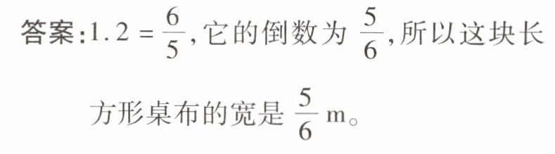 例:一块长方形桌布的长和宽的长度互为倒数,其中长为1.2 m,则它的宽是多少米?