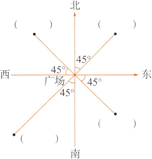 (2)新华书店的位置是南偏西45°,距离广场1500 m。