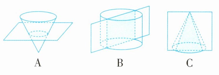 (3) 下面图形中,( )图形的切面是等腰三角形。