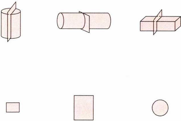 3. 把下面的立体图形切开,切开后的面分别是什么形状? 连一连。