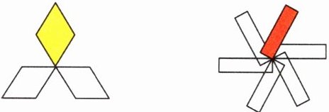 4. 左图中的平行四边形绕中心点旋转,每次旋转( )可得到该图案;右图中的长方形每次旋转( )可得到该图案。