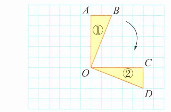 (1)如下图,图形②是由图形①绕点( )沿( )时针方向旋转( )得到的,点C的对应点是点( ),线段OC的对应线段是( ),线段CD的对应线段是( )。