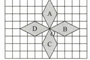 (2)如下图,图形A绕点( )顺时针旋转( )得到图形B,图形B绕点O( )时针旋转90°得到图形C。请画出图形A绕点O逆时针旋转90°得到的图形D,请直接在图中画出图形D。