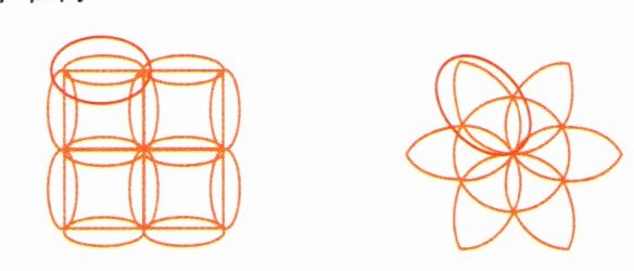 例:欣赏下列美丽的图案,选择一幅图案说一说,它是由哪个基本图形通过怎样的运动得到的。