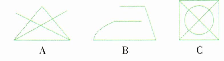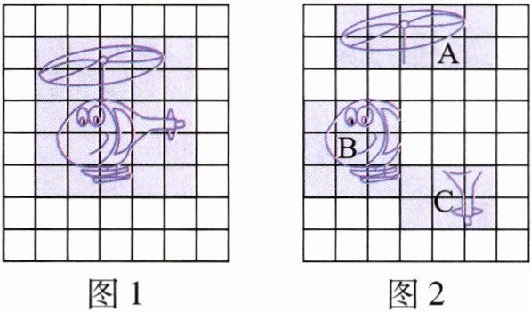图 A 向下平移 1 格,图 C 绕小长方形左上顶点逆时针旋转 90°,再向下平移 1 格,最后图 B、C 整体向右平移 1 格。(答案不唯一)