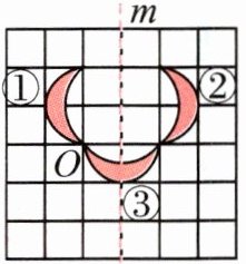 (2) 如右图,图形①可以看作是图形③先绕点O( )时针旋转( )°,再向( )平移( )格得到的,还可以看作是将图形( )关于直线m轴对称得到的。