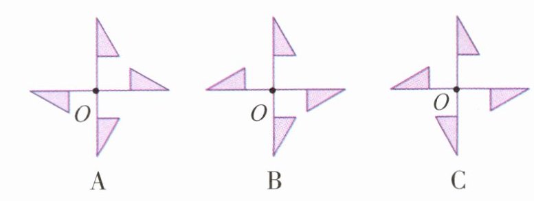 绕点O逆时针旋转90°,像这样操作3次,得到的图形是( )。