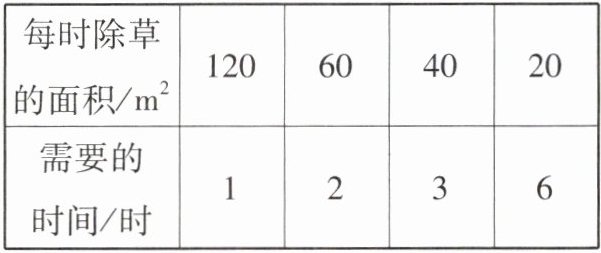 (2)需要的时间随着每时除草的面积的变化而变化。每时除草的面积越大,所需要的时间越少。