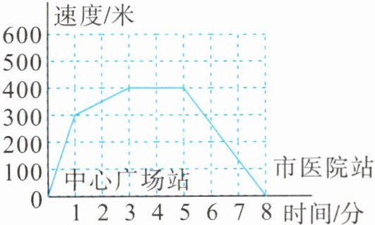 3. (韶关期末真题)下面是1路公共汽车从中心广场站到市医院站之间行驶的时间和速度的关系图。
