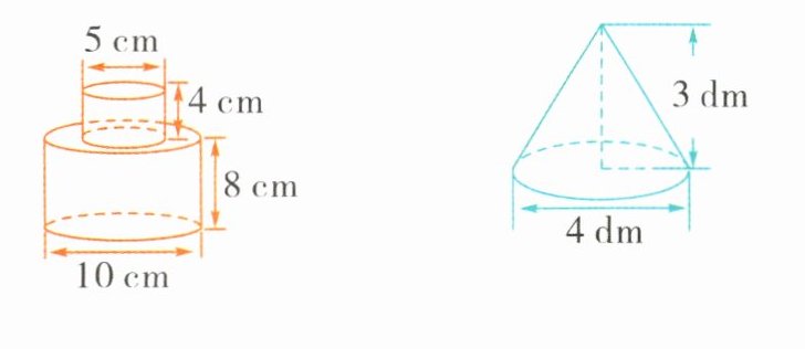 5. 在一个圆柱形水桶里,把一段底面半径为4 cm的圆柱形钢材全部放入水中后,水面上升了8 cm,把这段钢材竖着拉出水面6 cm后,水面下降了3 cm,求这段钢材的体积。