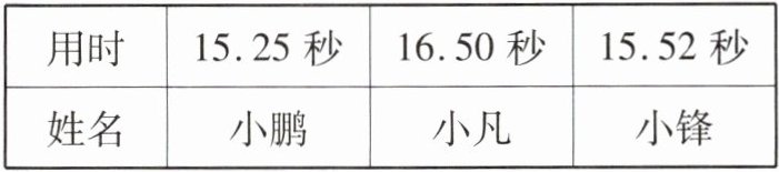 4. 实验小学进行100 m赛跑,前三名成绩见下表。获得第一名的是哪位同学?