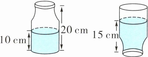 6. (湛江期末真题)如图,一个瓶子深20 cm,从里面量得底面直径是10 cm,瓶里水深10 cm,把瓶口塞紧后,使其瓶口向下倒立,这时水深15 cm,瓶子的容积是多少毫升?