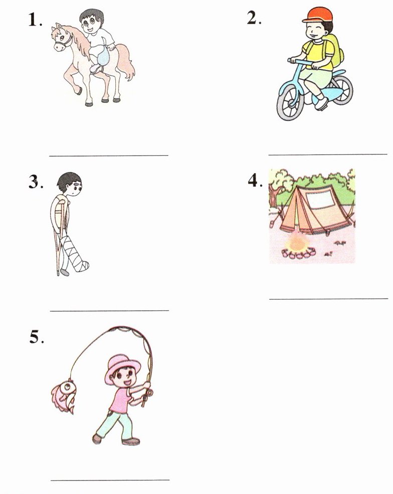1. rode a horse 2. rode a bike 3. hurt my foot 4. went camping 5. went fishing