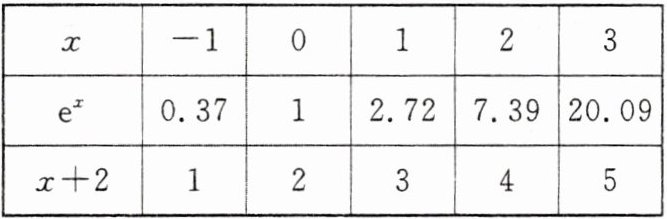 3. 根据下表中的数据,可知方程$e^{x}=x + 2$的一个根所在的区间是( )