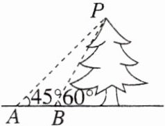 12. 如图所示,为测量一棵树的高度,在地面上选取A,B两点(A,B两点与树在同一平面内),从A,B两点测得树尖P的仰角分别为45°,60°,且A,B两点之间的距离为30 m,则该树的高度为________.