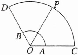 7. 如图,在扇形$COD$及扇形$AOB$中,$\angle COD=\frac{2\pi}{3}$,$OC = 3OA = 3$,动点$P$在$\overset{\frown}{CD}$上(包含端点),则$\overrightarrow{PA}\cdot\overrightarrow{PB}$的最小值是 ( )