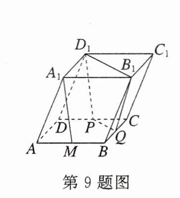 9. 如图,在平行六面体ABCD - A₁B₁C₁D₁中,点M,P,Q分别为棱AB,CD,BC的中点,若平行六面体的各棱长均相等,则下列结论中正确的是 ( )