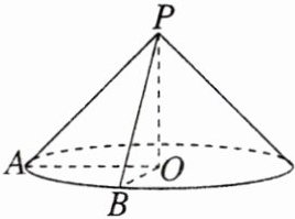 5. 如图所示,圆锥底面半径为2,O为底面圆心,A,B为底面圆O上的点,且∠AOB = $\frac{\pi}{3}$,∠PAO = $\frac{\pi}{4}$,则直线OA与PB所成角的余弦值为 ( )