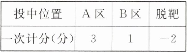2. (河北中考)某磁性飞镖游戏的靶盘如图。珍珍玩了两局,每局投10次飞镖,若投到边界则不计入次数,需重新投。计分规则如下:
