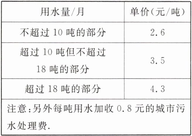 (3)若小强和小明家2月份一共用水23吨,共交纳水费81.8元,其中小强家用水量少于10吨,小明家用水量少于18吨,那么小强和小明家2月份分别用水多少吨?