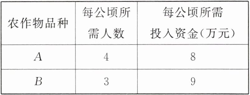 1.(2024·安徽)乡村振兴战略实施以来,很多外出人员返乡创业.某村有部分返乡青年承包了一些田地,采用新技术种植A,B两种农作物.种植这两种农作物每公顷所需人数和投入资金如下表: