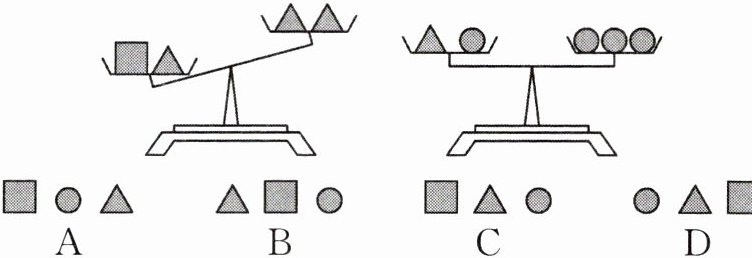 14.设“△”“○”“□”分别表示三种不同的物体,现用天平称两次,情况如图所示,那么△○□这三种物体按质量从大到小排列应为 ( )