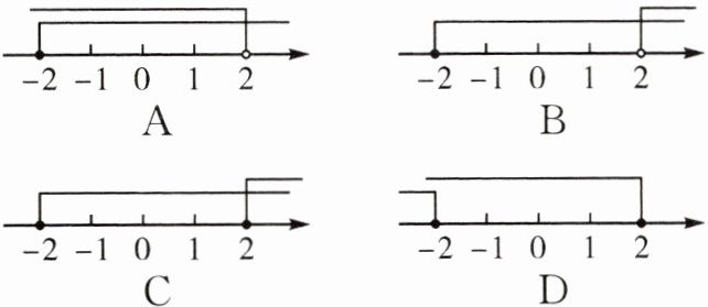 3.(2024·汉台月考)不等式组$\begin{cases}x\geqslant - 2\\x < 2\end{cases}$的解集在数轴上表示为( )