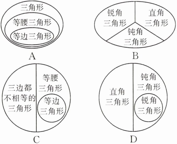 3.(2024·岳西月考)用下面的图表示三角形的分类,其中不正确的是( )
