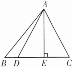 4. 如图,在$\triangle ABC$中,$AE\perp BC$,$D$为$BC$上一点,连结$AD$,则图中__________是锐角三角形,__________是直角三角形,__________是钝角三角形.