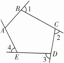 7. 如图,在五边形$ABCDE$中,$\angle BAE = 110^{\circ}$,则$\angle 1+\angle 2+\angle 3+\angle 4=$_______.