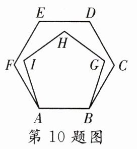 10. 如图,在正六边形$ABCDEF$内,以$AB$为边作正五边形$ABGHI$,则$\angle FAI=$_______.