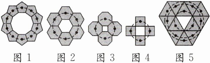 12.如图1、图2、图3,用一种大小相等的正多边形密铺成一个“环”,我们称之为环形密铺,但图4、图5不是我们所说的环形密铺.请你再写出一种可以进行环形密铺的正多边形:____________.