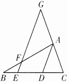 9.如图,在△ABC中,AD是∠BAC的平分线,EF//AD,分别交BC,AB,CA的延长线于点E,F,G,∠B = 30°,∠C = 70°,则∠G的度数为_______.