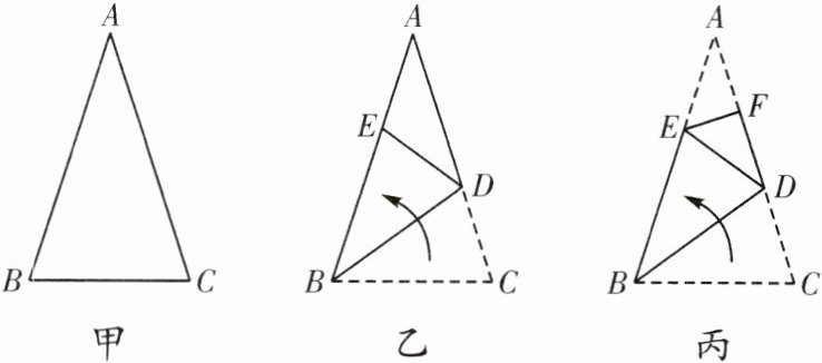 10.在如图甲所示的三角形纸片ABC中,∠B = ∠C,将纸片沿过点B的直线折叠,使点C落到AB边上的点E处,折痕为BD(如图乙).再将纸片沿过点E的直线折叠,点A恰好与点D重合,折痕为EF(如图丙),则∠ABC的大小为______°.
