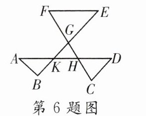 6. 如图,∠A + ∠B + ∠C + ∠D + ∠E + ∠F的度数为________。