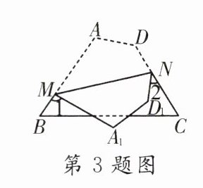 3. 如图,将四边形纸片ABCD沿MN折叠,点A,D分别落在点A₁,D₁处。若∠1 + ∠2 = 130°,则∠B + ∠C = ( )