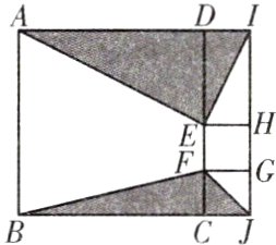 1. [运算能力、几何直观、创新意识]如图,点D,C,H,G分别在长方形ABJI的边上,点E,F在CD上,若大正方形ABCD的面积为20,图中阴影部分的面积总和为8,则小正方形EFGH的面积为 ( )