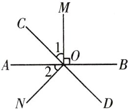 13.如图,直线AB,CD相交于点O,OM⊥AB。