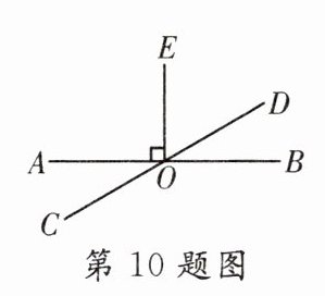 10.如图,直线AB与直线CD相交于点O,OE⊥AB,且∠BOD:∠EOD=1:2,则∠EOC的度数为 ( )