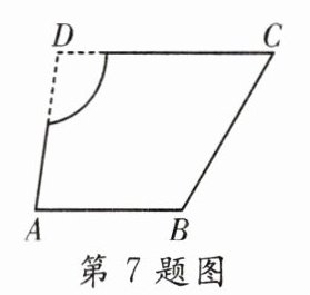 7. 如图,这是某次考古发掘出的一块四边形残缺玉片,工作人员从玉片上已经量得∠A = 82°。已知∠B + ∠C = 180°,则此玉片的残缺角∠D的度数为 ( )