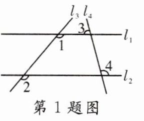 1. (2024.呼和浩特)如图,直线L1和L2被直线l3和L4所截,∠1 = ∠2 = 130°,∠3 = 75°,则∠4的度数为 ( )