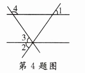 4. 如图,已知∠1 = ∠2 = ∠3 = 55°,则∠4的度数是________。