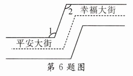 6. (2024.兰州)如图,小明在地图上量得∠1 = ∠2,由此判断幸福大街与平安大街互相平行,他判断的依据是( )