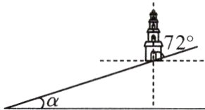 8. 如图,一座塔建在山坡上,塔身与水平面垂直。现测得塔身与山坡坡面所成的锐角为72°,则此山坡的坡面与水平面夹角α的度数为 ( )