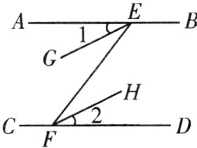 所以∠1 + ∠FEG = ∠2 + ∠EFH,