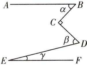 8. 如图,AB//EF,∠C = 90°,则α,β和γ的关系是 ( )