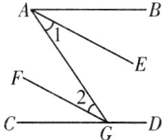 9. 如图,点G在CD上,∠BAG + ∠AGD = 180°,EA平分∠BAG,FG平分∠AGC。请说明AE//GF的理由。补全下面的过程。