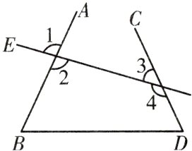 10. (辽宁中考)如图,直线CD,EF被射线OA,OB所截,CD//EF。若∠1 = 108°,则∠2的度数为 ( )