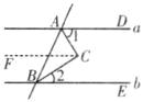 所以∠1 = ∠ACF,∠2 = ∠BCF。因为AC,BC分别是∠DAB,∠ABE的平分线,所以∠1 = $\frac{1}{2}$∠DAB,∠2 = $\frac{1}{2}$∠ABE,