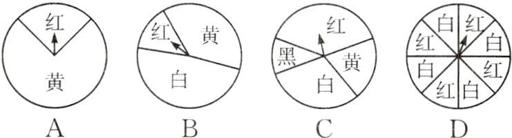 13.(教材P80复习题T1变式)转动下列各转盘,指针指向红色区域的可能性最大的是( )